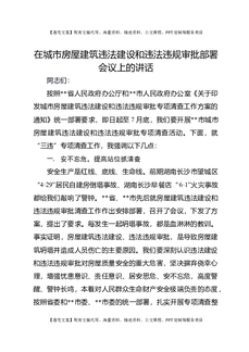 在城市房屋建筑违法建设和违法违规审批部署会议上的讲话 (1)
