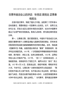 在青年座谈会上的讲话:听党话 跟党走 正青春 有担当