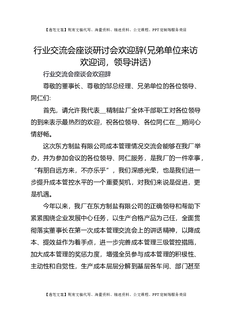 行业交流会座谈研讨会欢迎辞(兄弟单位来访欢迎词,领导讲话)