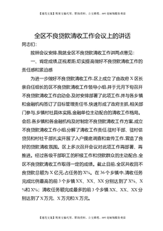 全区不良贷款清收工作会议上的讲话.docx