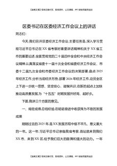 区委书记在区委经济工作会议上的讲话.docx