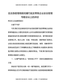 区应急管理局烟花爆竹批发零售企业安全管理专题会议上的讲话.docx