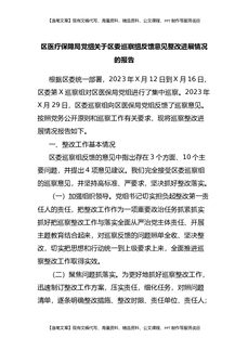 区医疗保障局党组关于区委巡察组反馈意见整改进展情况的报告.docx