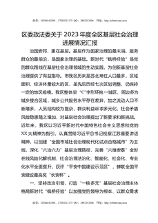 区委政法委关于2023年度全区基层社会治理进展情况汇报.docx