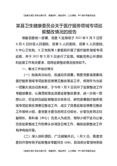某县卫生健康委员会关于医疗服务领域专项巡察整改情况的报告.docx