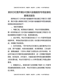 某农行纪委开展乡村振兴金融服务专项监督检查情况报告.docx