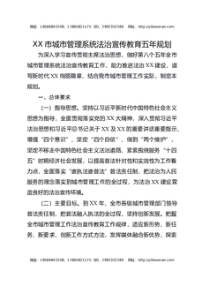XX市城市管理系统法治宣传教育五年规划.docx