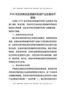 XXX市支持再生资源循环利用产业发展若干措施.docx