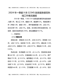 2024年一季度X市12345政务服务便民热线工作情况通报.docx