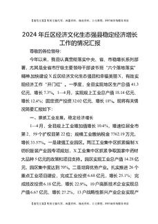 2024年丘区经济文化生态强县稳定经济增长工作的情况汇报.docx