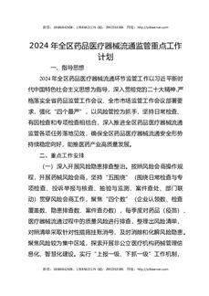 2024年全区药品医疗器械流通监管重点工作计划.docx