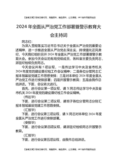 2024年全面从严治党工作部署暨警示教育大会主持词.docx