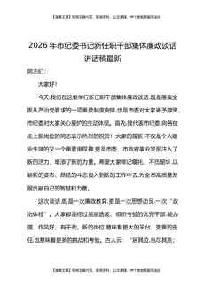 2026年市纪委书记新任职干部集体廉政谈话讲话稿最新.docx