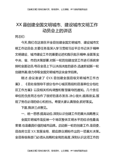 XX县创建全国文明城市、建设城市文明工作动员会上的讲话.docx