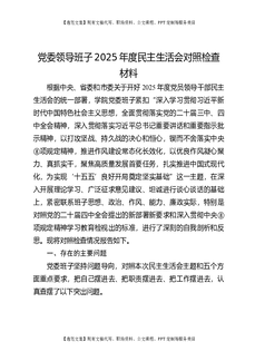 党委领导班子2025年度民主生活会对照检查材料.docx