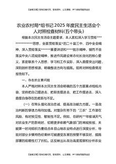 农业农村局党组书记2025年度民主生活会个人对照检查材料(五个带头).docx