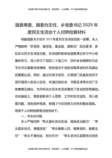旗委常委、旗委办主任、XX乡党委书记2025年度民主生活会个人对照检查材料(精品).docx