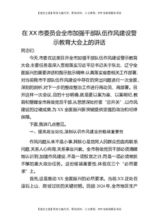 在XX市委员会全市加强干部队伍作风建设警示教育大会上的讲话.docx