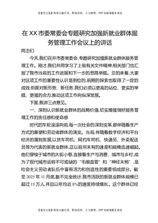 在XX市委常委会专题研究加强新就业群体服务管理工作会议上的讲话.docx