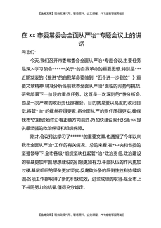 在XX市委常委会全面从严治党专题会议上的讲话.docx