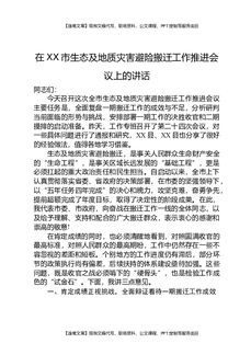 在XX市生态及地质灾害避险搬迁工作推进会议上的讲话.docx