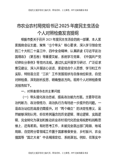 市农业农村局党组书记2025年度民主生活会个人对照检查发言提纲.docx