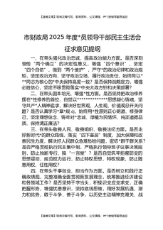 市财政局2025年度党员领导干部民主生活会征求意见提纲.docx
