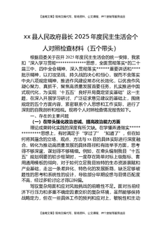 XX县人民政府县长2025年度民主生活会个人对照检查材料(五个带头).docx