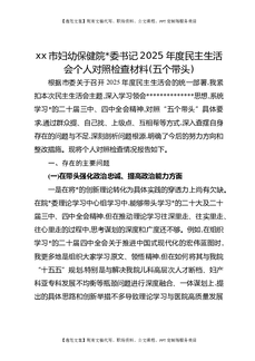 XX市妇幼保健院党委书记2025年度民主生活会个人对照检查材料(五个带头).docx