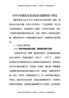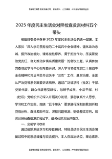 2025年度民主生活会对照检查发言材料五个带头.docx