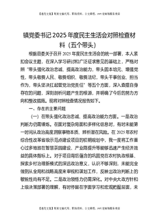 镇党委书记2025年度民主生活会对照检查材料(五个带头).docx