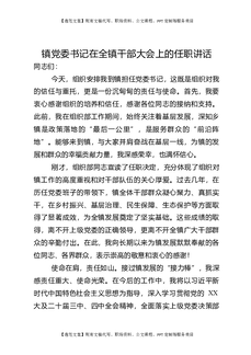 镇党委书记在全镇干部大会上的任职讲话.docx