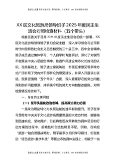 XX区文化旅游局领导班子2025年度民主生活会对照检查材料(五个带头).docx