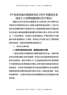 XX生态环境分局党组书记2025年度民主生活会个人对照检查材料(五个带头).docx