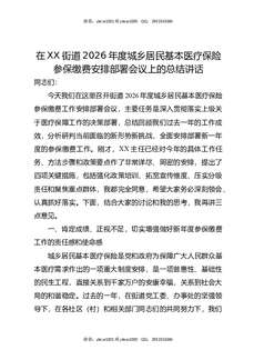 在XX街道2026年度城乡居民基本医疗保险参保缴费安排部署会议上的总结讲话.docx