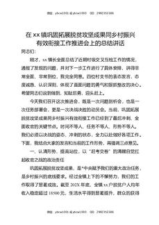 在XX镇巩固拓展脱贫攻坚成果同乡村振兴有效衔接工作推进会上的总结讲话.docx