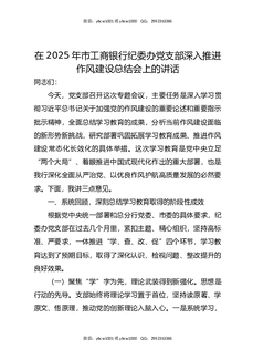 在2025年市工商银行纪委办党支部深入推进作风建设总结会上的讲话.docx
