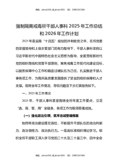 强制隔离戒毒所干部人事科2025年工作总结和2026年工作计划.docx