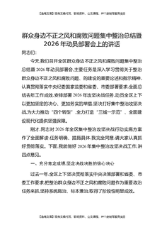 群众身边不正之风和腐败问题集中整治总结暨2026年动员部署会上的讲话.docx