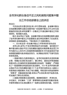 全市深化群众身边不正之风和腐败问题集中整治工作总结部署会上的讲话.docx