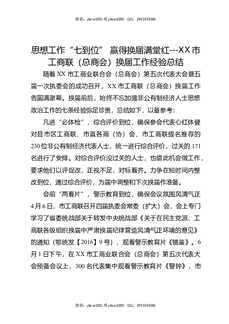 思想工作“七到位”赢得换届满堂红--XX市工商联(总商会)换届工作经验总结.docx
