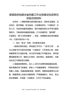 某镇政府创建全省档案工作业务建设先进单位经验总结材料.docx