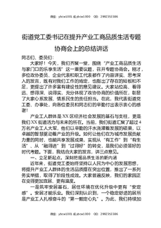 街道党工委书记在提升产业工商品质生活专题协商会上的总结讲话.docx