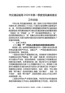 市交通运输局2026年第一季度党风廉政建设工作总结.docx