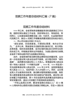 双拥工作年度总结材料汇编(7篇).docx