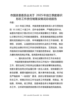 市国资委委员会关于2025年前三季度意识形态工作责任制落实情况总结报告.docx