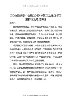 XX公司党委中心组2025年第X次集体学习主持词及总结讲话.docx