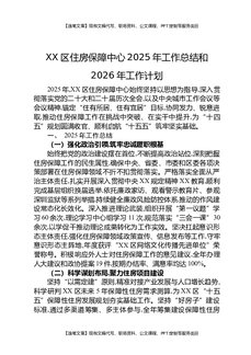 XX区住房保障中心2025年工作总结和2026年工作计划.docx