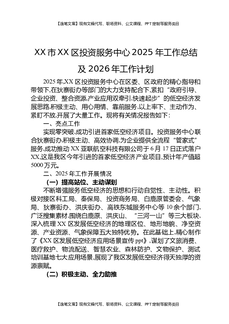 XX市XX区投资服务中心2025年工作总结及2026年工作计划.docx