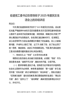 街道党工委书记在领导班子2025年度民主生活会上的总结讲话.docx